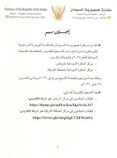 إعلان هام من السفارة السودانية بالرياض بشأن امتحانات الشهادة السودانية 2026م